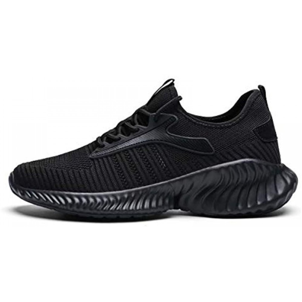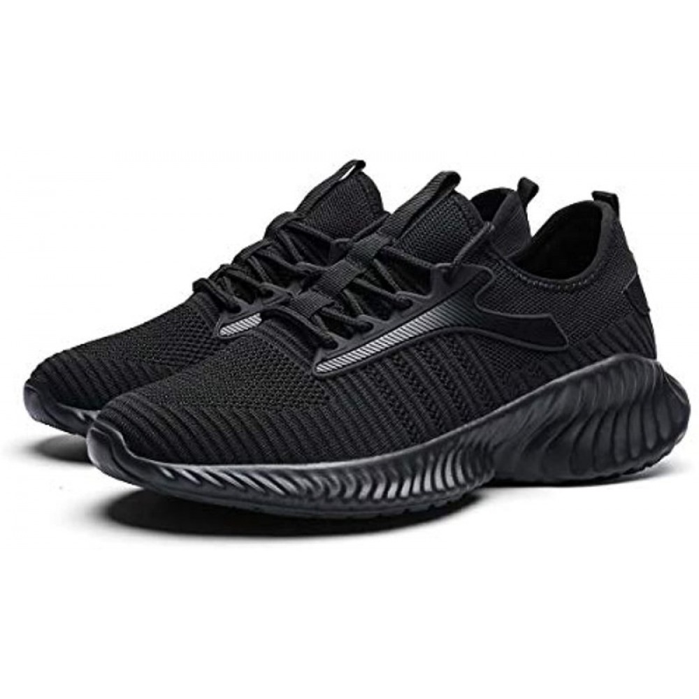 Men's Running Shoes Breathable Knit Slip On Sneakers Lightweight Athletic Shoes Casual Sports Shoes All Black