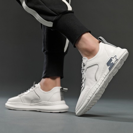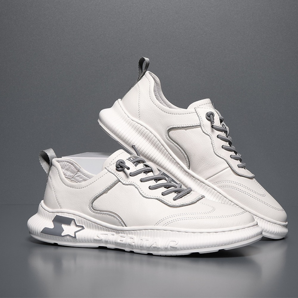 Autumn New Sports Shoes Men's Leather Hot Style Casual Men's Shoes Low-Cut White Shoes