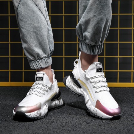 Spring New Men's Shoes Low-Top Sneakers Mens Thick-Soled Fly Woven Casual Trendy Shoes Men